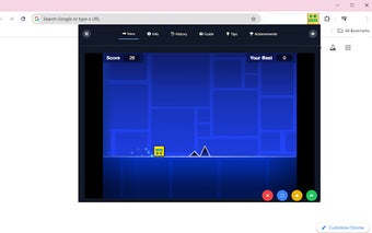 Met de Geometry Dash Chrome-extensie kunnen spelers hun voortgang volgen, nieuwe skins ontgrendelen en hun vrienden uitdagen om hun scores te overtreffen. De naadloze gameplay zonder vertragingen maakt het een uitstekende keuze voor snelle speelsessies. Of je nu een ervaren gamer bent of nieuw in de wereld van platformgames, Geometry Dash biedt een spannende ervaring vol actie en ritme.